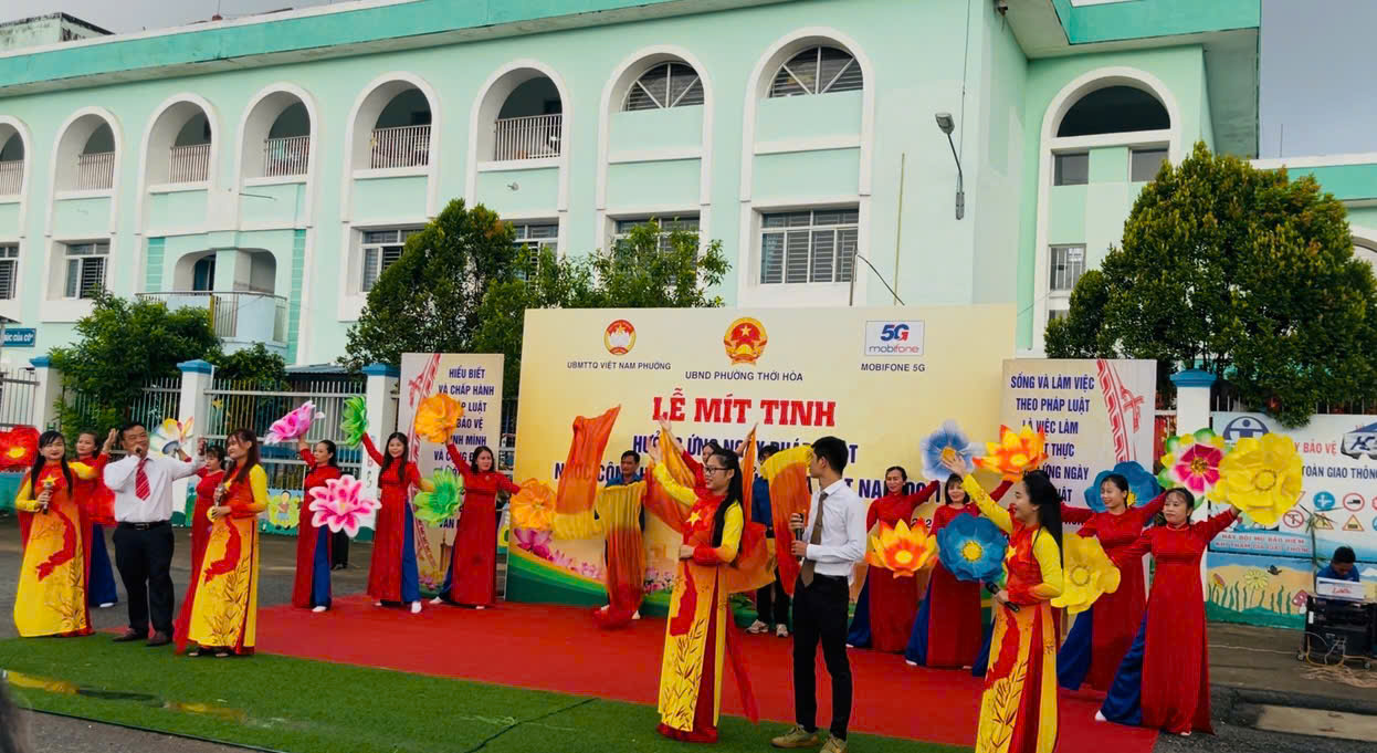 Sáng ngày 07 tháng 11 năm 2025, Ủy ban Mặt trận Tổ quốc Việt Nam phường Thới Hòa phối hợp cùng Ủy ban Nhân dân phường tổ chức Lễ Mít tinh hưởng ứng “Ngày Pháp luật nước Cộng hòa xã hội chủ nghĩa Việt Nam 09/11” tại Trường Mầm non Thới Hòa.