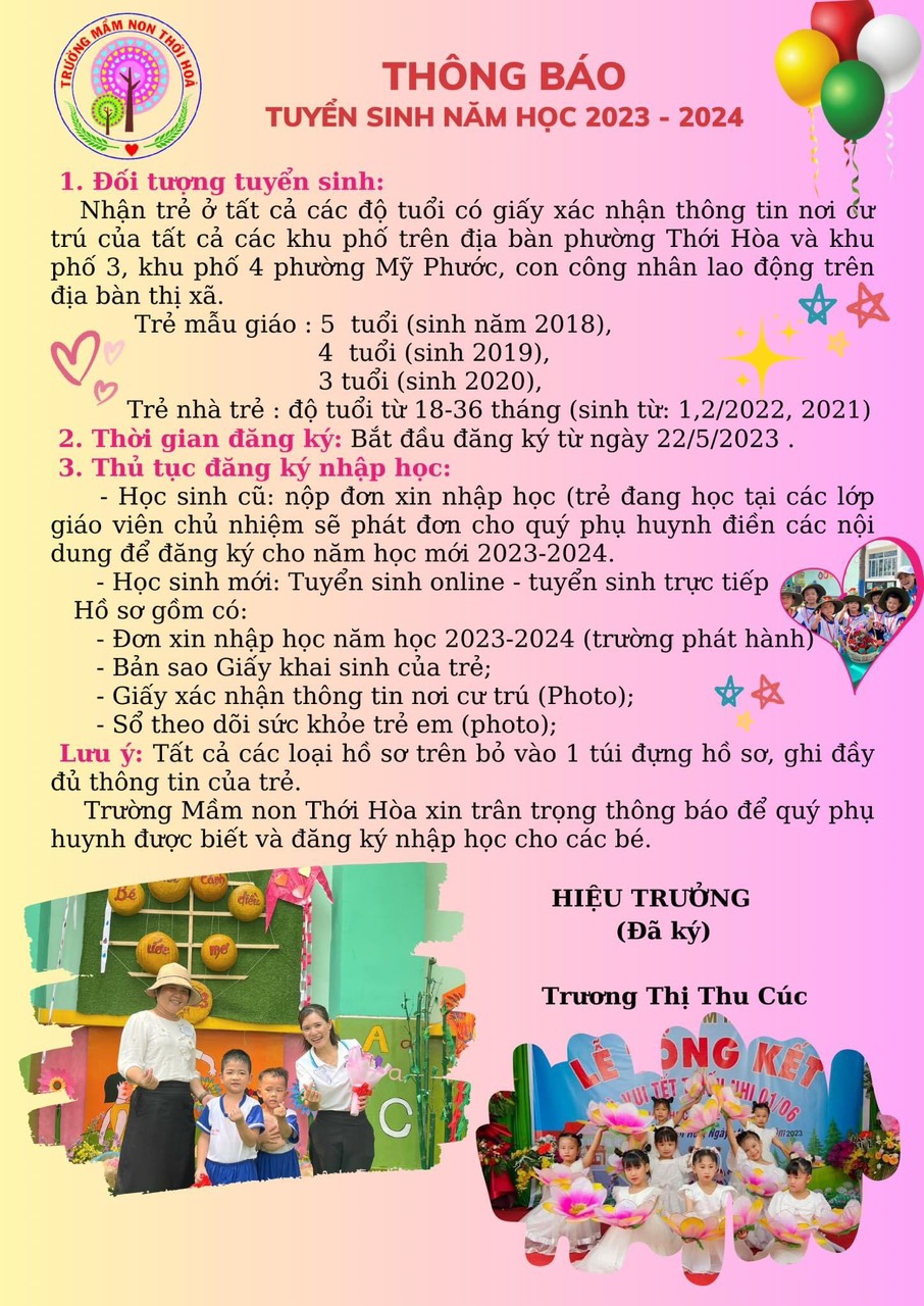 Thông báo tuyển sinh năm học 2023-2024